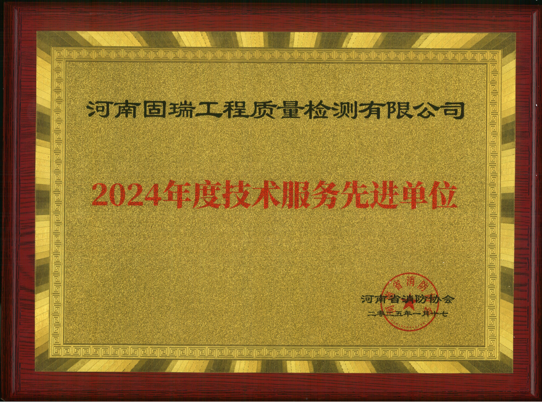 • 熱烈祝賀河南固瑞工程質量檢測有限公司榮獲河南省消防協會2024年度技術服務先進單位!!!